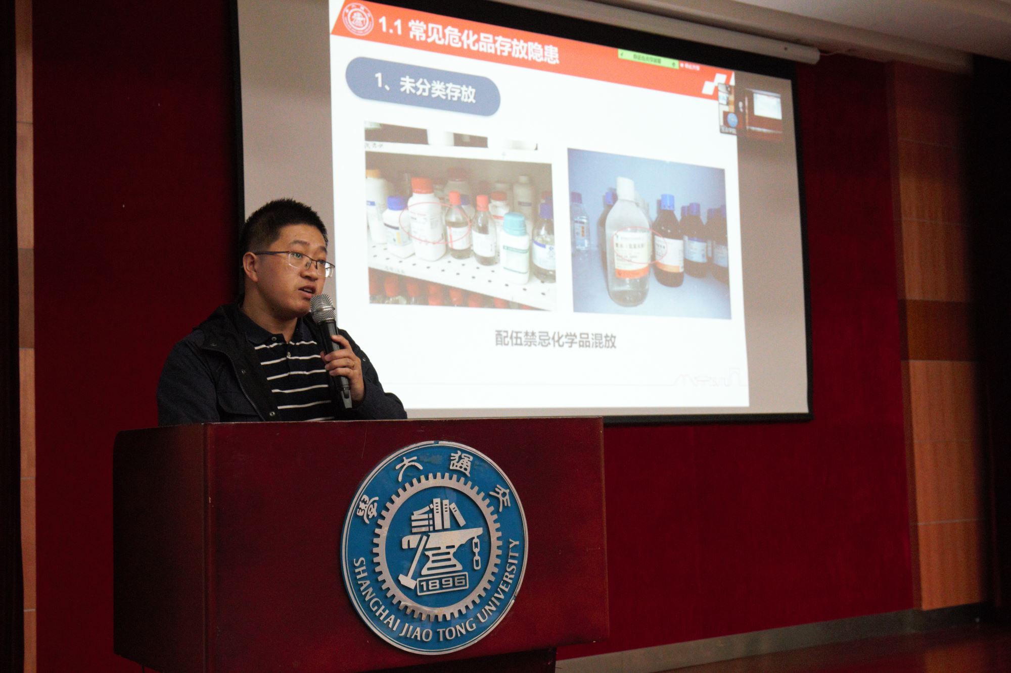 刘闯作上海交通大学化学品存放管专题培训,介绍了常见危化品存放规范与隐患、实验气体及钢瓶存放规范与隐患、各类试剂柜安全使用,并重点介绍了试剂柜使用常见问题、各类试剂柜的安全使用要求。