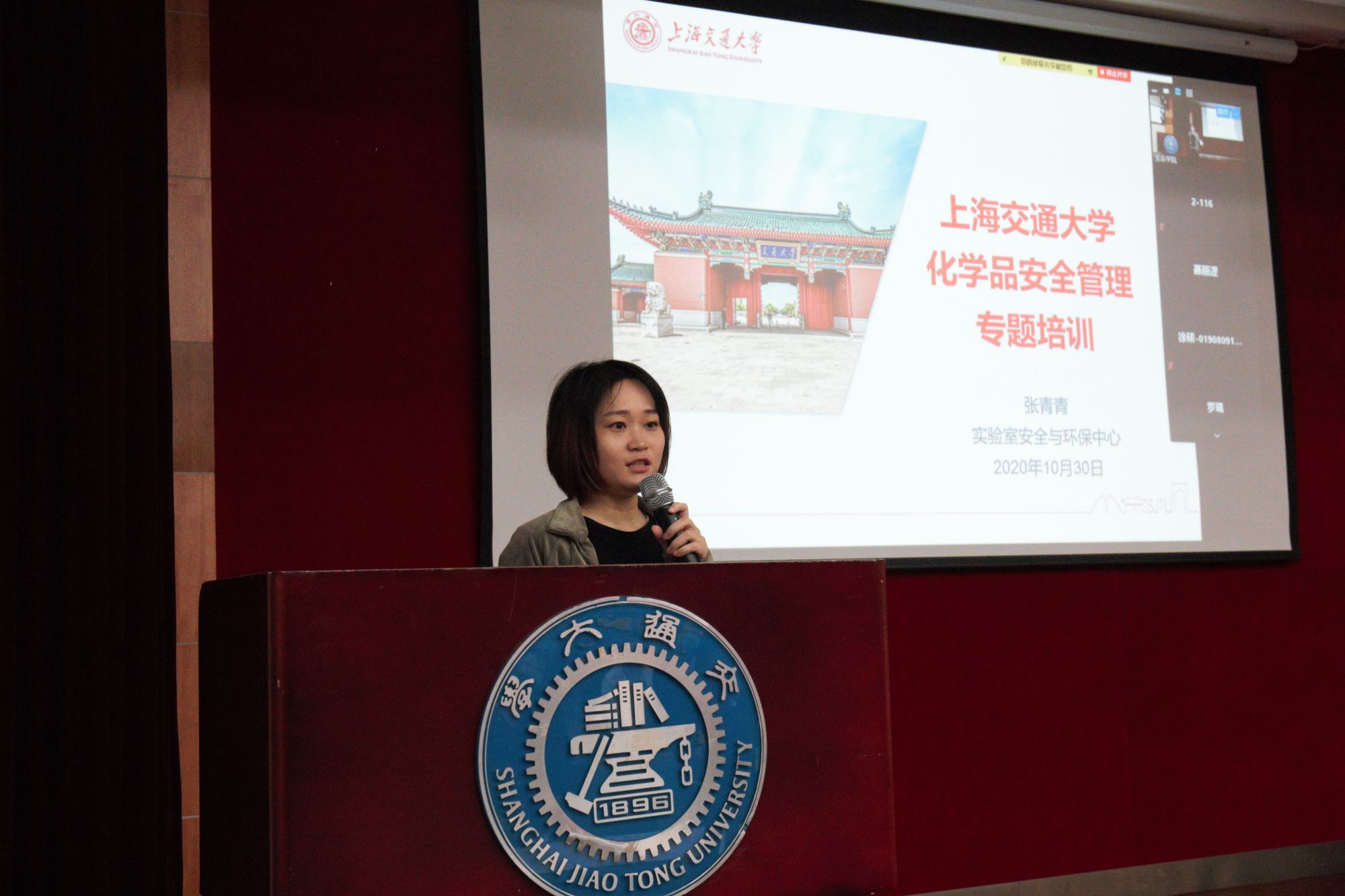 张青青作上海交通大学化学品安全管理专题培训,详细介绍了各类危险化学品分类与特性、化学品全生命过程安全管理规范,以及近期的工作举措和要求。她强调了近期开展库存管理工作的问题和要求,以及学校近期推进化学品去库存+分类存放+废弃试剂清理同步开展。