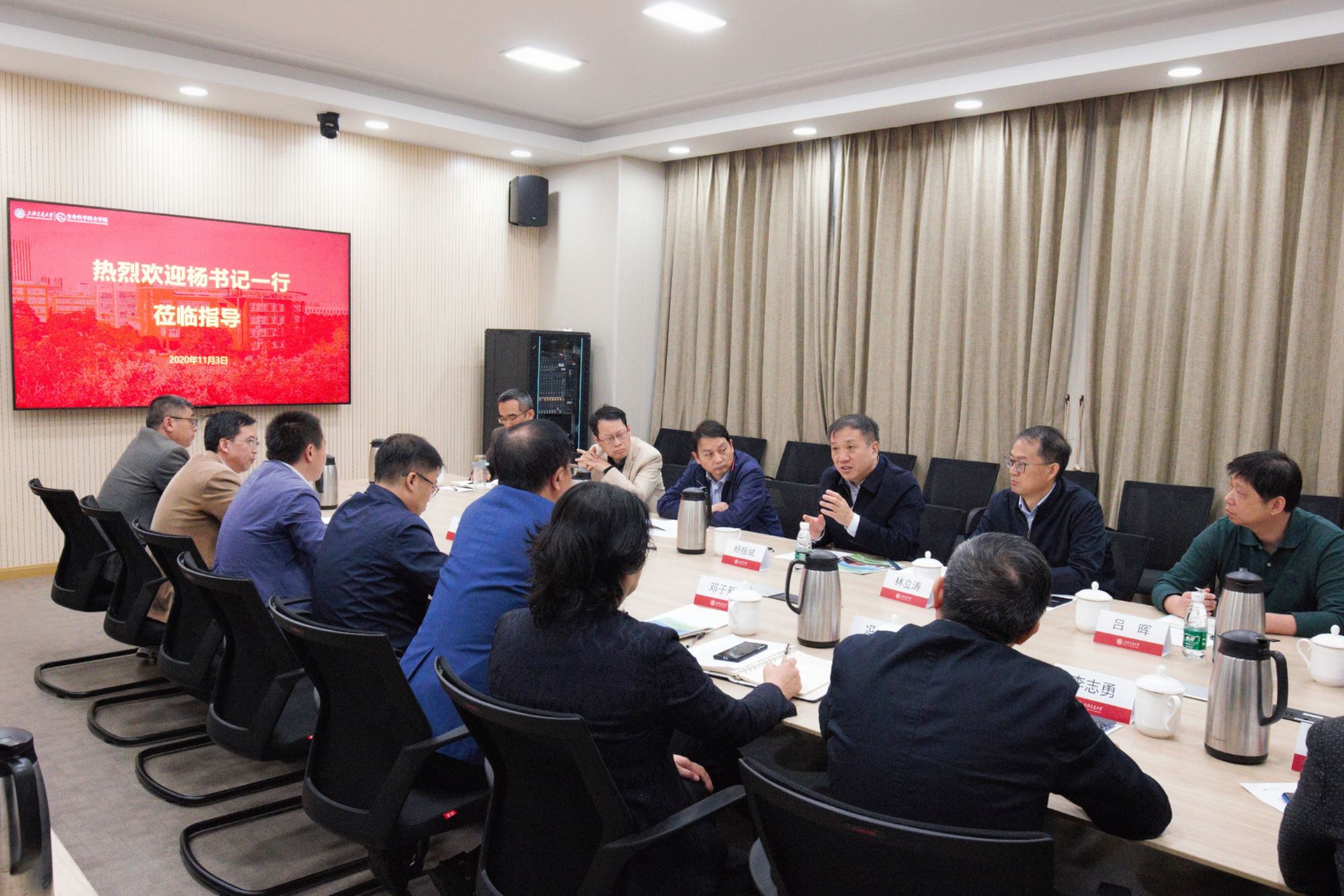 11月3日上午,校党委书记杨振斌到我院调研。学院领导班子成员,系、中心负责人和教师代表参加调研座谈,校党政办负责同志一同调研。