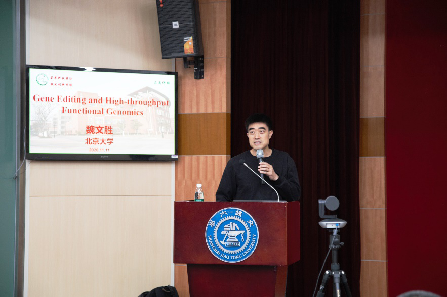 11月11日下午,北京大学魏文胜教授应邀做客求真讲坛,作题为《Gene Editing and High-throughput Functional Genomics》的主题报告。来自我院、系统院、药学院的教师、博士后、研究生等60余人参加了本次讲坛。由于疫情防控需要,本次讲坛线上线下同步开展,线上参会的师生为20余人。讲坛由我院副院长林双君教授主持。