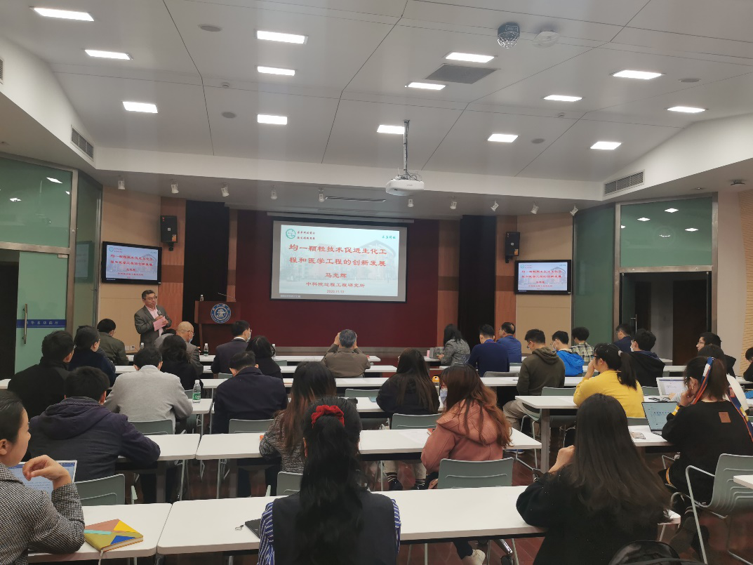 11月13日,中科院过程工程研究所马光辉研究员应邀做客求真讲坛,作题为《均一颗粒技术促进生化工程和医学工程的创新发展》的主题报告。来自我院、系统院、药学院的教师、博士后及研究生约50人参加了本次讲坛。讲坛由我院副院长林双君教授主持。