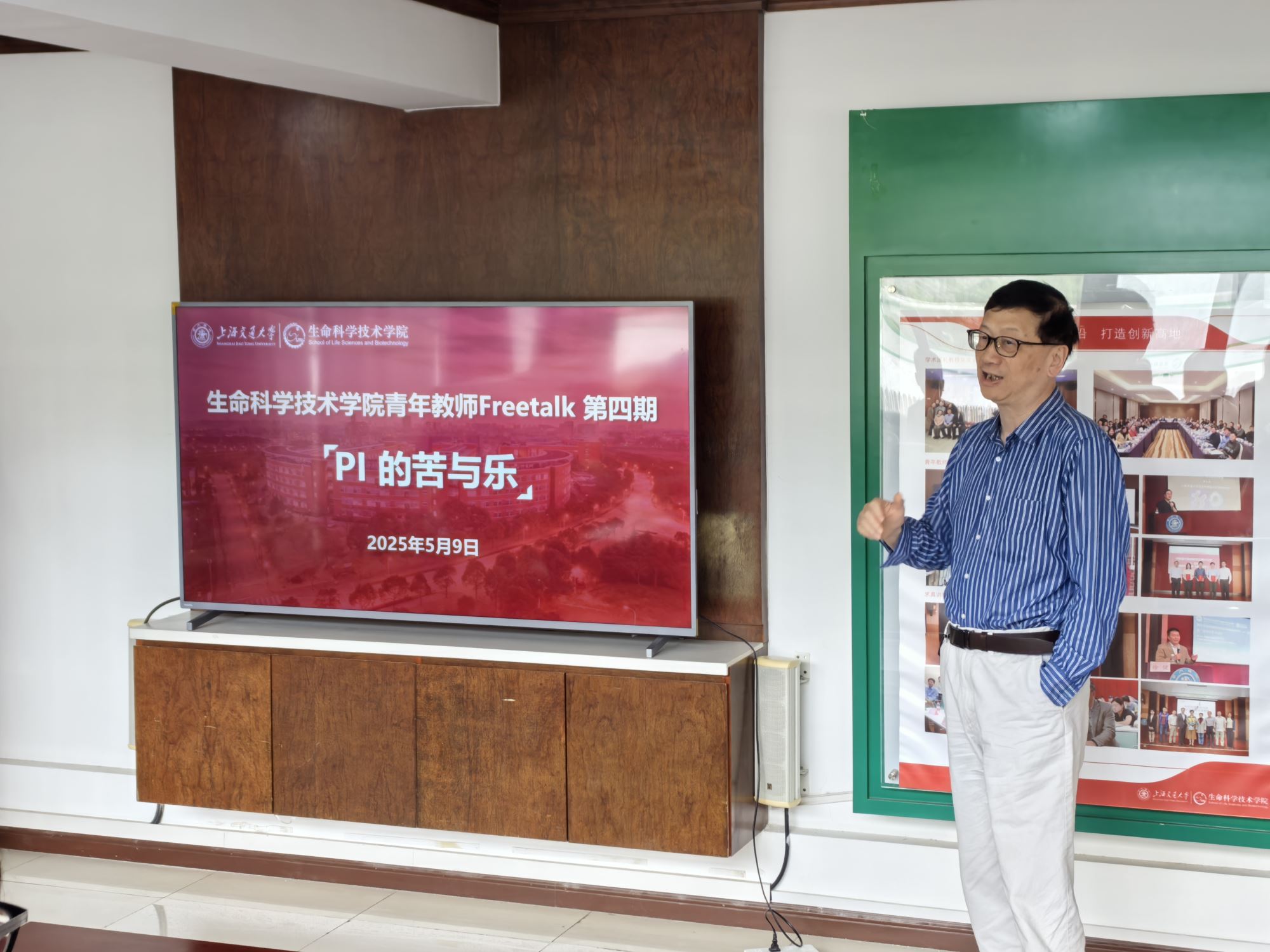 2025年5月9日,我院青年教师联谊会在教工之家举办第四期Freetalk活动。本期主题为“PI的苦与乐”,特邀学院党委委员、遗传与发育科学系党支部书记、国家高层次人才杨选明教授作为主讲人。副院长唐鸿志、副书记王鑫、微生物科学系主任周宁一,以及30余位青年教师参加本次活动。活动由唐鸿志副院长主持。