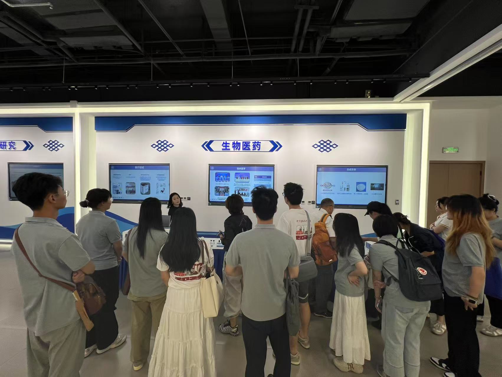 会前,实践团一行参观了上海交通大学内蒙古研究院展厅和入驻企业,了解了研究院在包括生物医药在内的各领域的发展概况。