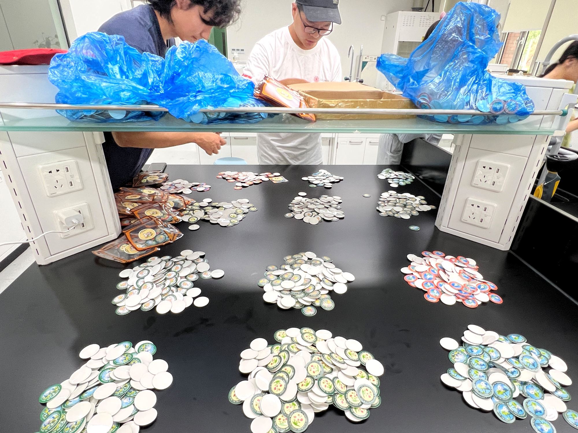 图四.实践团成员分装驱蚊爆珠贴的工作场景