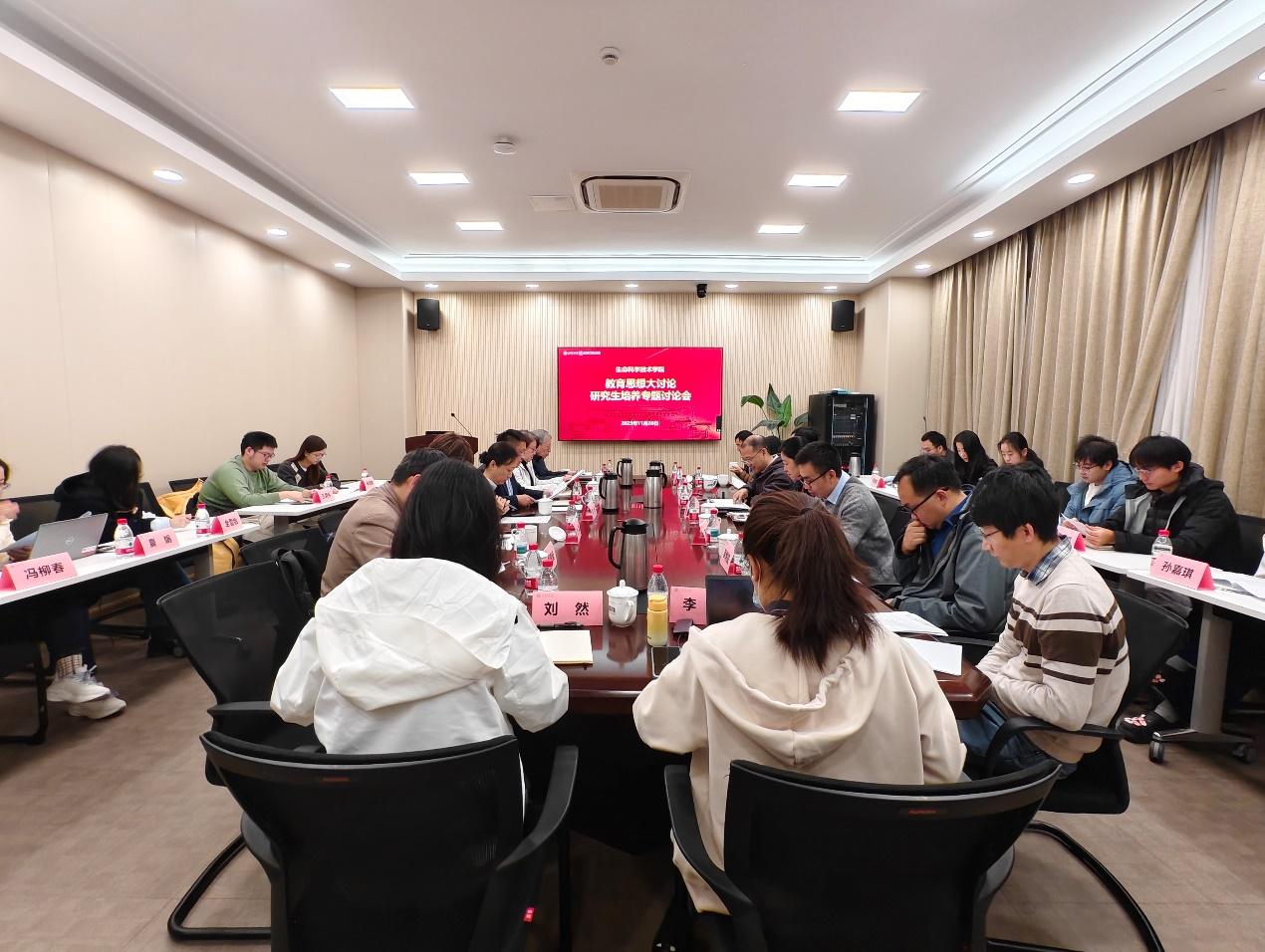 2025年11月20日,我院在生物药学楼2-116会议室举办导师培训暨研究生培养专题讨论会,共话新时代育人使命与创新机制。上海交通大学研究生院培养办公室主任仇浩、高层次交叉创新人才培养办公室王文竹应邀出席会议。学院副院长唐鸿志、李丹,各系教学副系主任、新晋导师代表、任课教师代表、荣誉计划博士生代表、各年级博士生代表及教学秘书共同参会,围绕研究生培养过程中的关键专题展开深入交流。会议由唐鸿志主持。